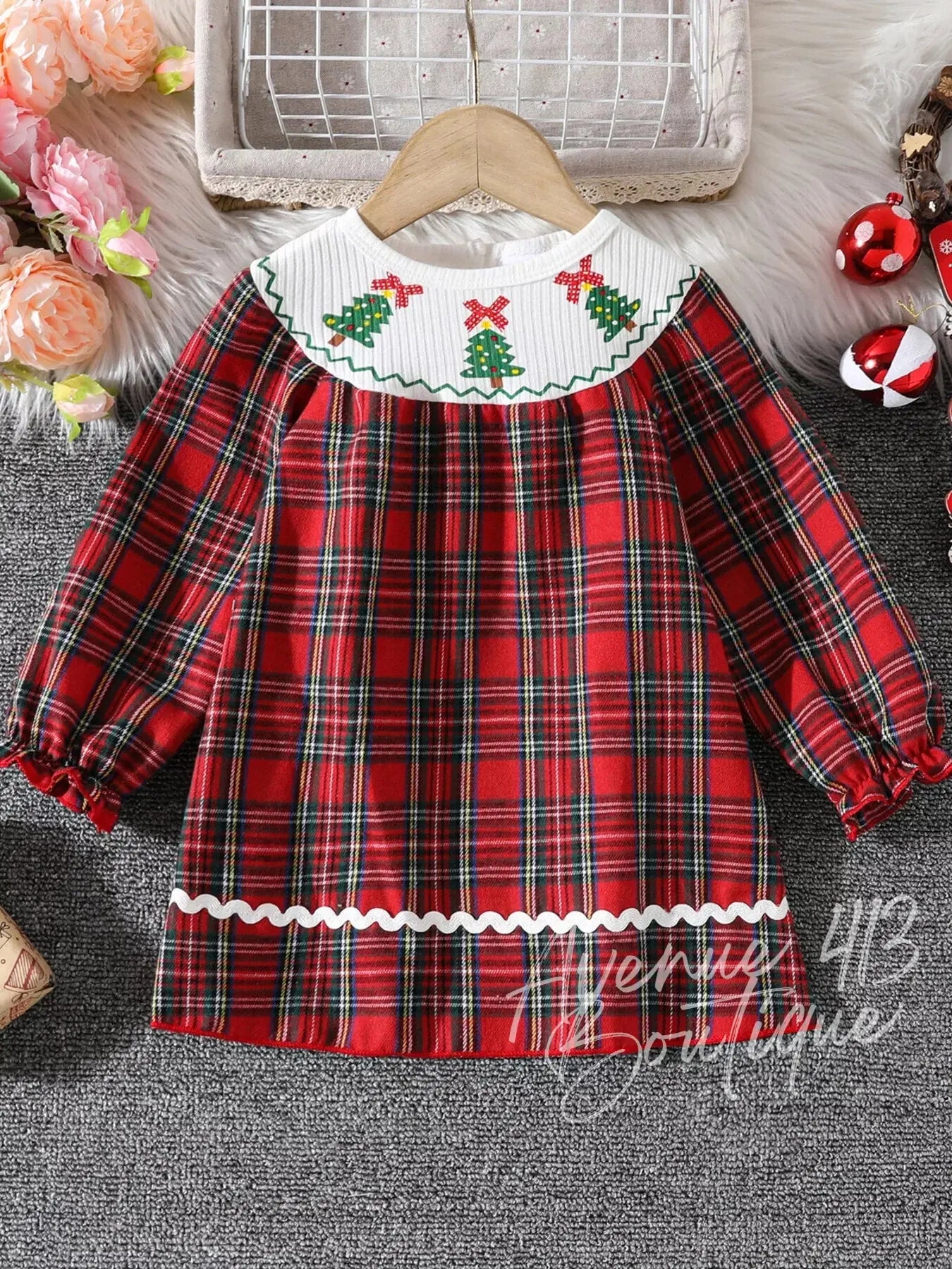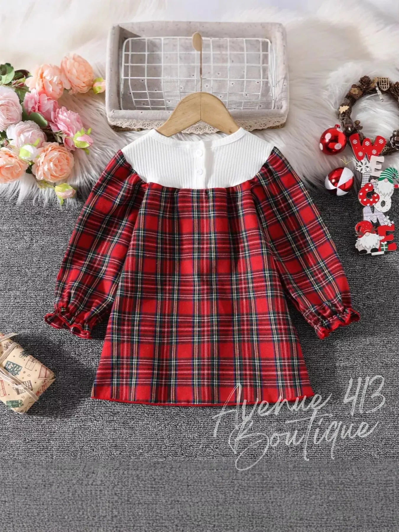 Children's Christmas Plaid Long Sleeve Dress